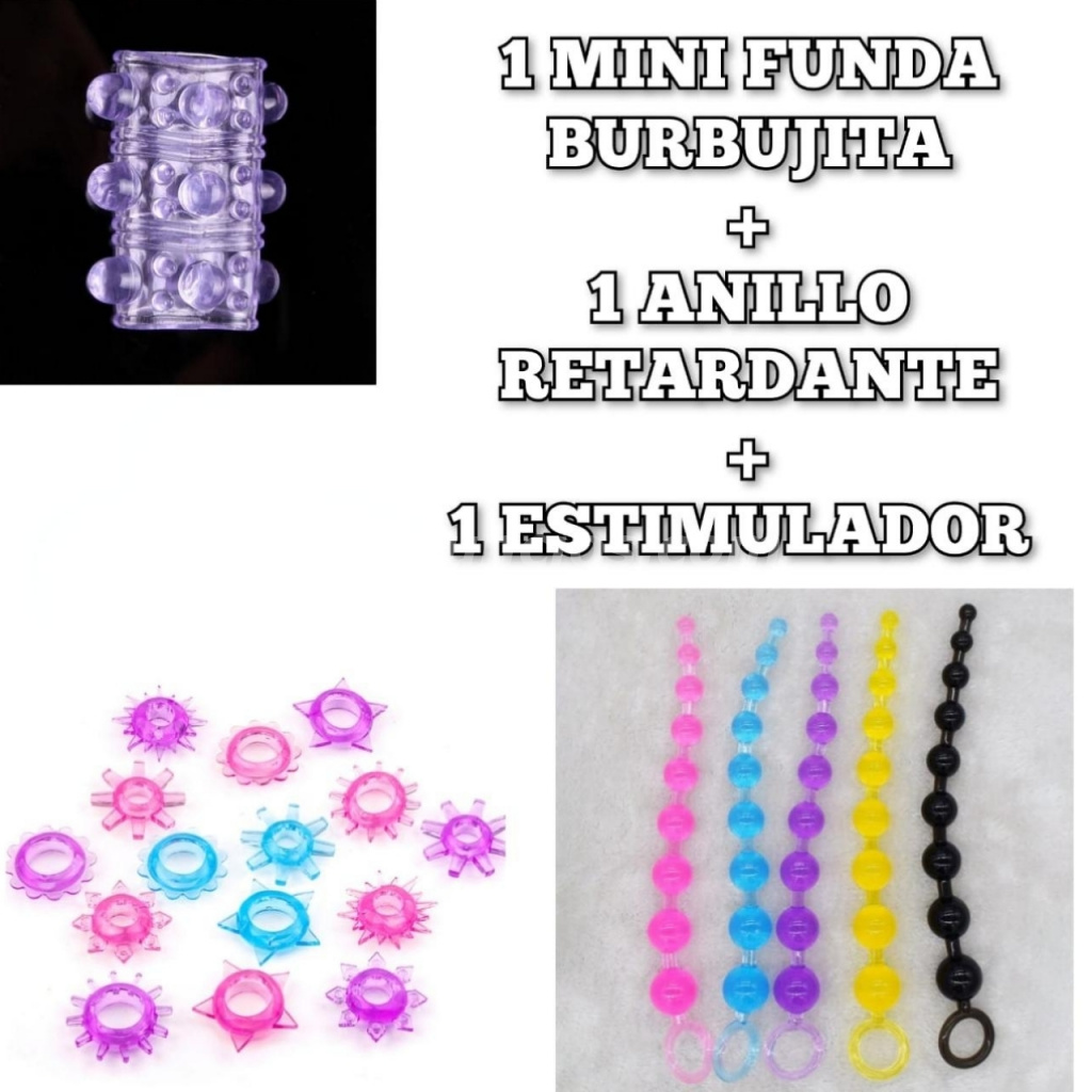 Disfruta de una experiencia más intensa y variada con este completo kit 3 en 1, diseñado para llevar el placer a otro nivel. Incluye una mini funda texturizada tipo burbujita que incrementa la sensibilidad, un anillo retardante que ayuda a prolongar el momento, y un estimulador que añade nuevas sensaciones.
