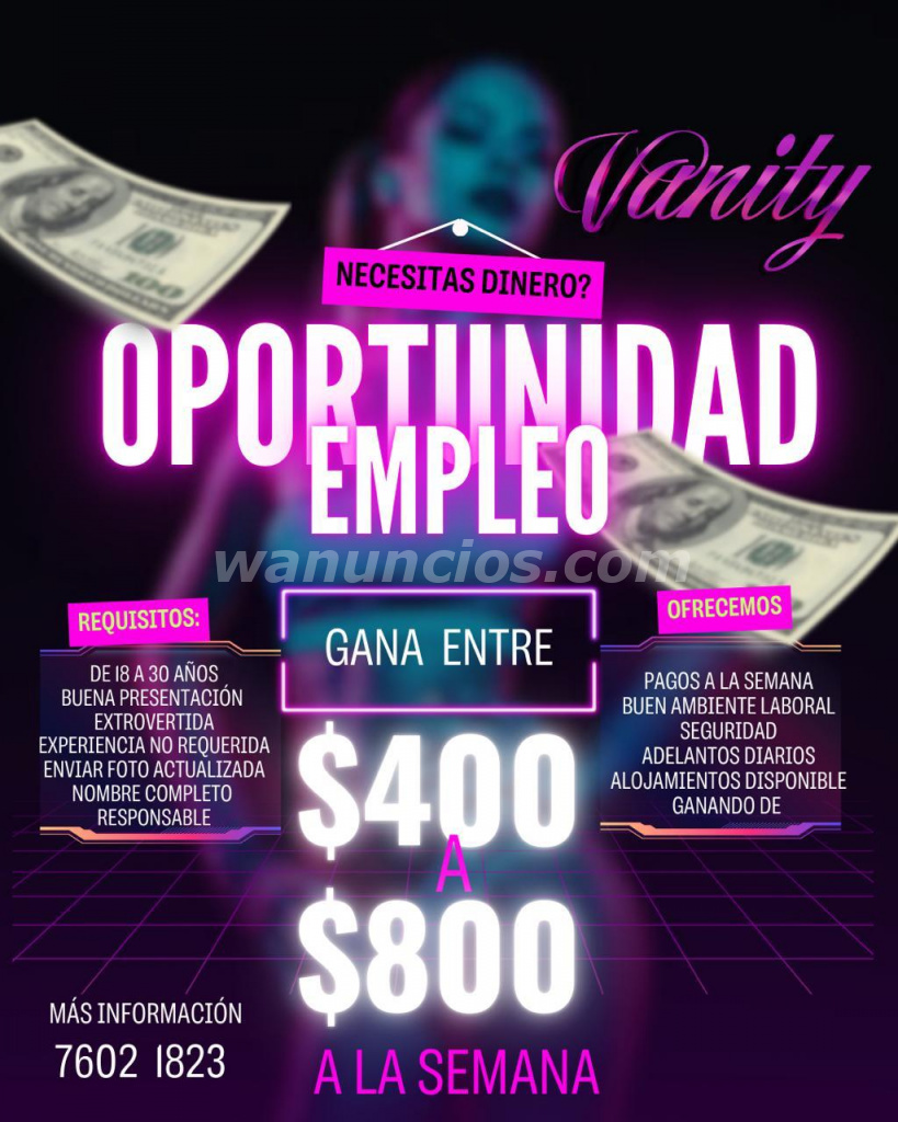 Esta buscando empleo, necesitas dinero de inmediato, eres atractiva contactanos