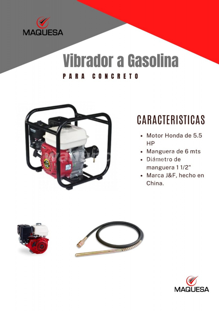 770 US$ - Vibrador para concreto motor a gasolina JF HONDA. Manguera de 1.5 Pulg. (San Salvador)